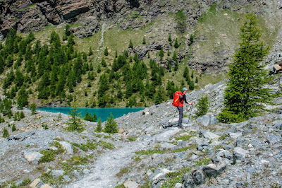 Tako smo v najboljši vročini dosegli naše izhodišče, St. Jacques (1689 m). Naložili smo naše nahrbtnike, ki so bili prav pošteno težki, ter si vzeli pot pod noge. Od tod smo se skozi gozdiček povzpeli na planino Pian di Verra Inferiore.